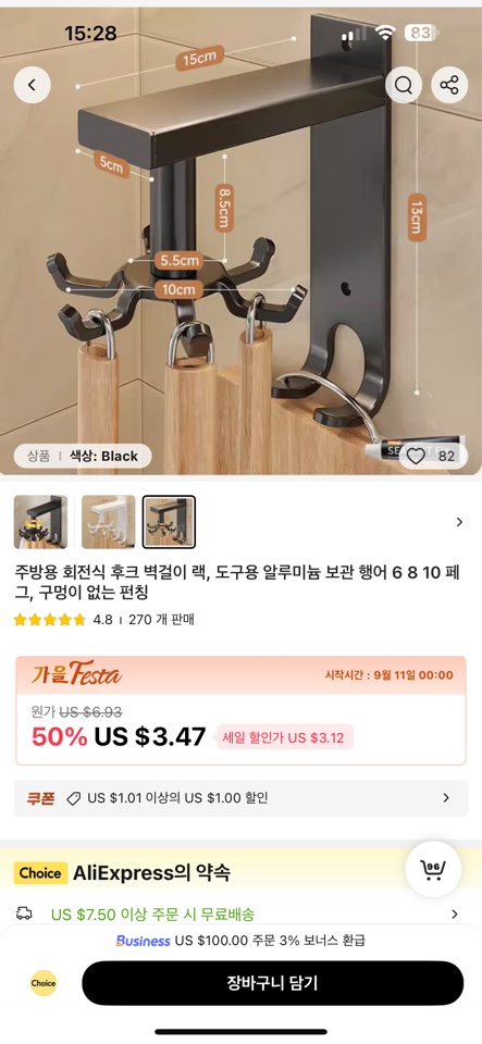 알리익스프레스 주방용 [회전식 후크] 구매기